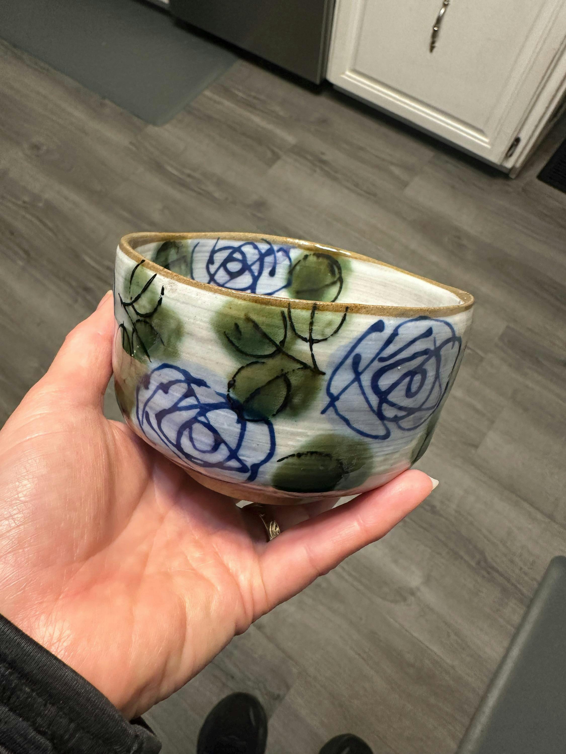 Blue Rose Garden Mino-yaki Chawan - Japanese Matcha Bowl